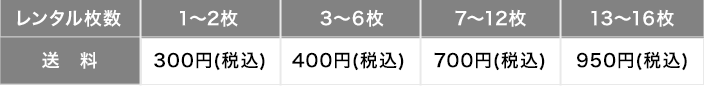 | レンタル枚数 | 1~2枚 | 3~6枚 | 7~12枚 | 13~16枚 |